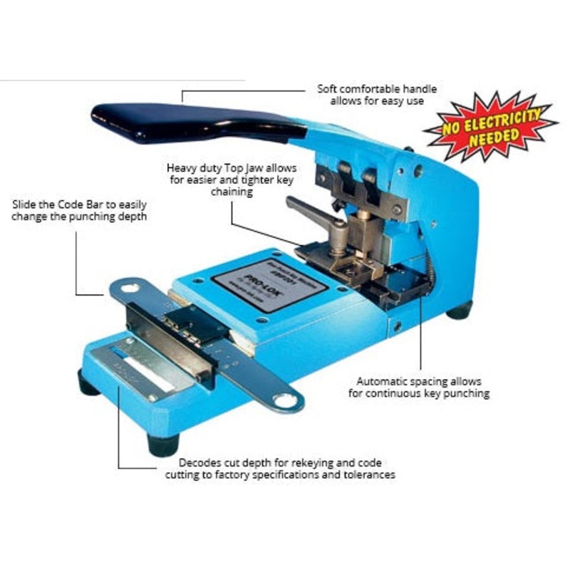 * When not in stock, ships in approximately 6-8 business weeks.The Falcon/Weiser Blue Punch machine is designed to cut factory original keys. This machine cuts all Falcon Standard (non IC) Weiser.* Will not cut 8 or 9 depths