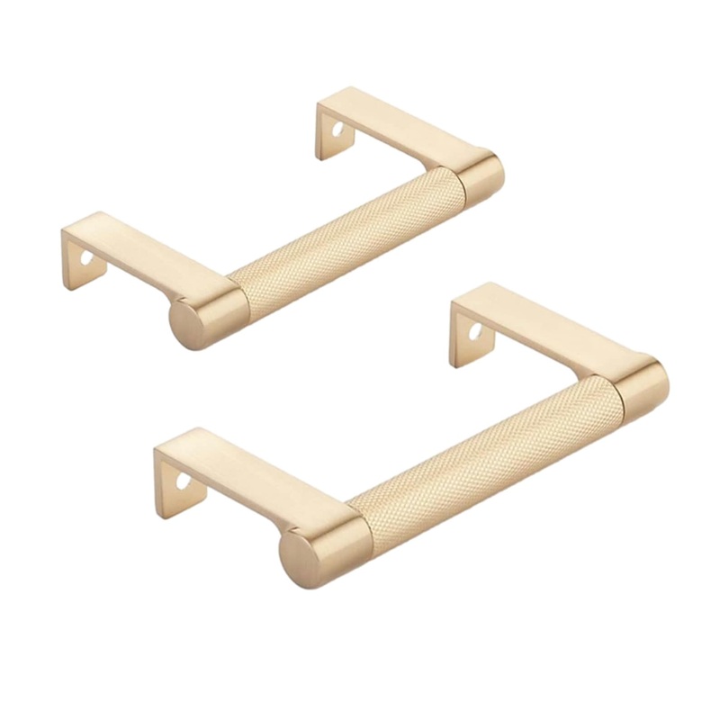 Champagne bronze knurled edge drawer pulls which match other knobs and handles available from the same collection on our site. These cabinet handles have clean lines and can make a bold statement simultaneously. Each mounts with two bolts/screws (included).