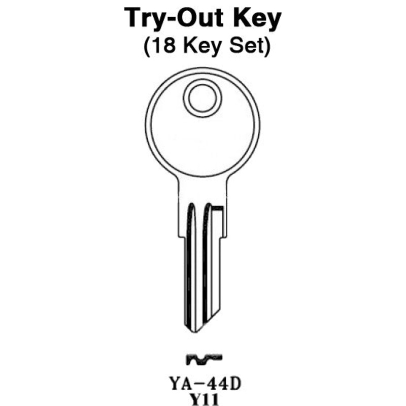 Tryout KeyProductTO-121Key Blank:Y11Code Series:N/ASpace Cut:AllNumber of Keys:10Description:Works on plastic ignition locks that take the Y11 key blank, you will find this set works a TON of different types of boats!Special Instructions:This set is loose