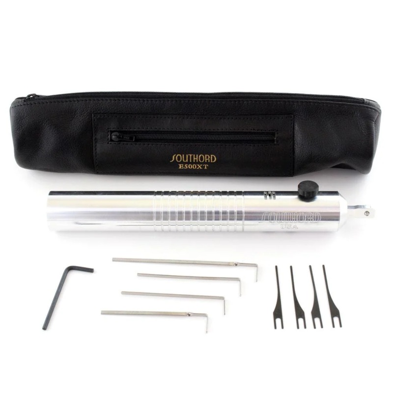 SouthOrd began manufacturing electric lock picks in 1992 with the E100C, followed by the E100HO, and both were remarkable successes. As time passed, improvements were made and in 2006, the E110 Series of electric lock picks was introduced. They’ve taken the volume of knowledge gained in the past 15 years of manufacturing high-quality electric picks and the result is the new fifth generation SouthOrd E500XT Electric Lock Pick Gun. This pick provides high power in a comfortable, easy to use, and covered by a six month warranty for both parts and labor. The powerful long life motor is designed for the SouthOrd E500XT for optimum performance. Like our previous models, tthis SouthOrd electric lock pick gun can be powered by rechargeable Ni-Cad or NiMH batteries or standard Alkaline C cell batteries, so you never need worry about replacing expensive battery packs or throwing the tool away when it will no longer take a charge.